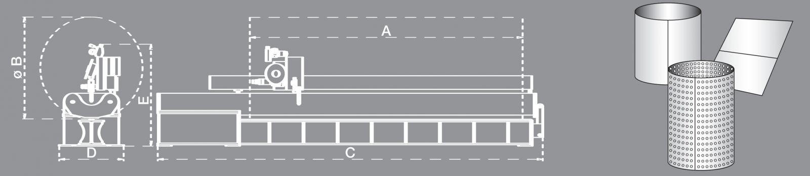 Вместо традиционной направляющей машина имеет прочное основание, на которое установлен держатель и медный суппорт. Преимущество данной конструкции состоит в том, что фактически нет ограничения по диаметру обечайку.
